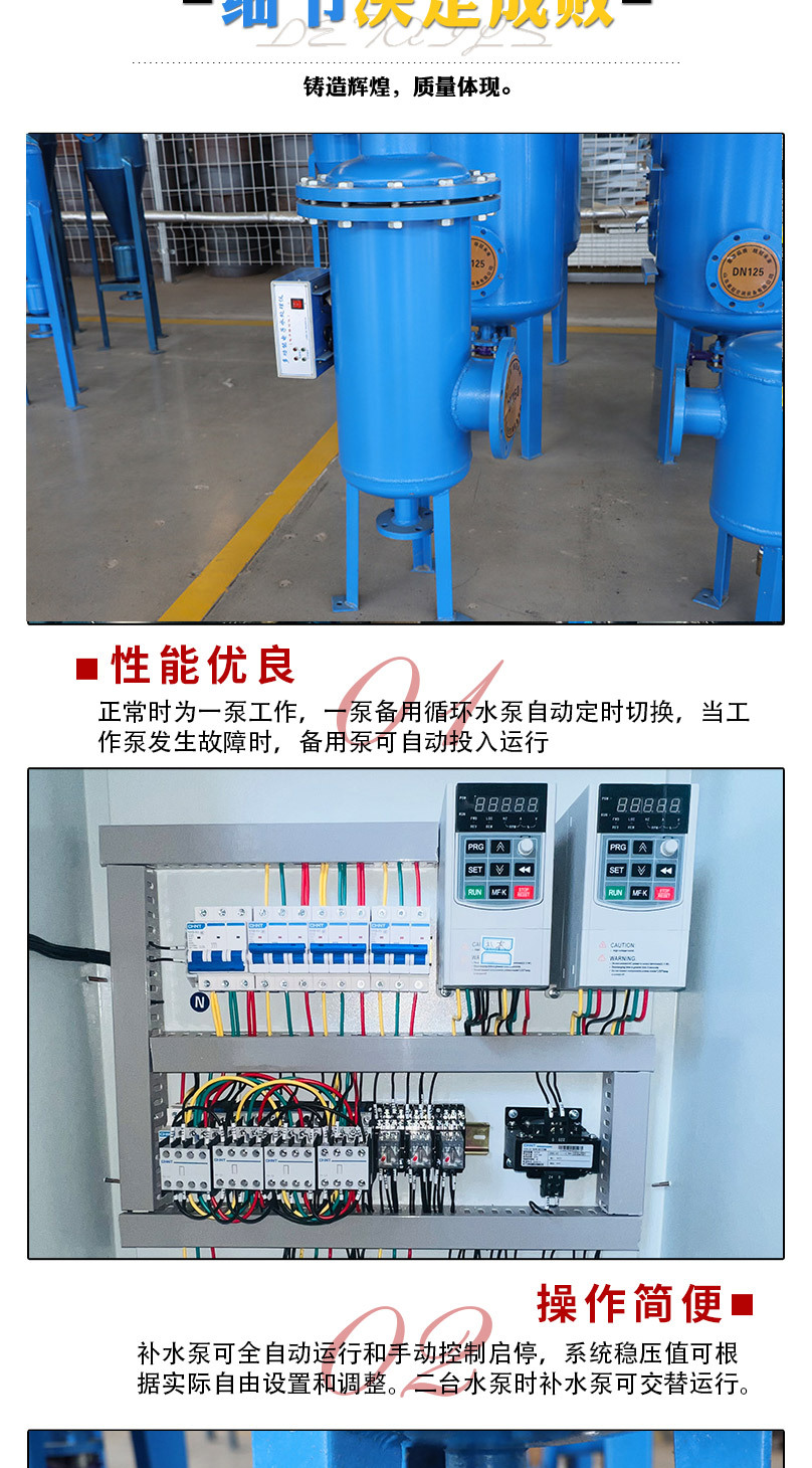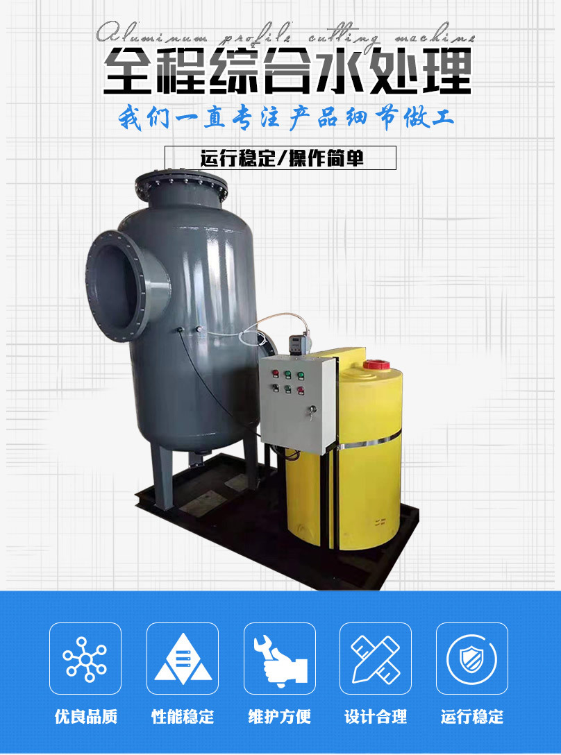 物化法全程水處理器是用于循環水處理的實用新型產品,它通過對水系統的綜合處理,徹底解決以往加藥方法產生的懸浮物遺留問題和物理處理方法效果不明顯問題,可有效防止水系統經常出現的結垢、腐蝕、生物粘泥、懸浮物堵塞問題,成為現今最有效的循環水處理設備。