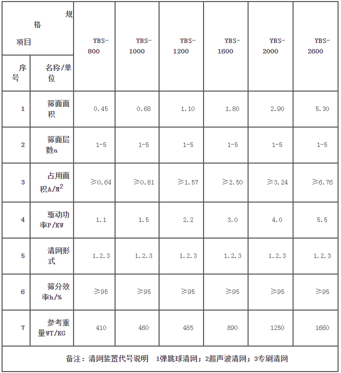 磨料搖擺篩技術參數: